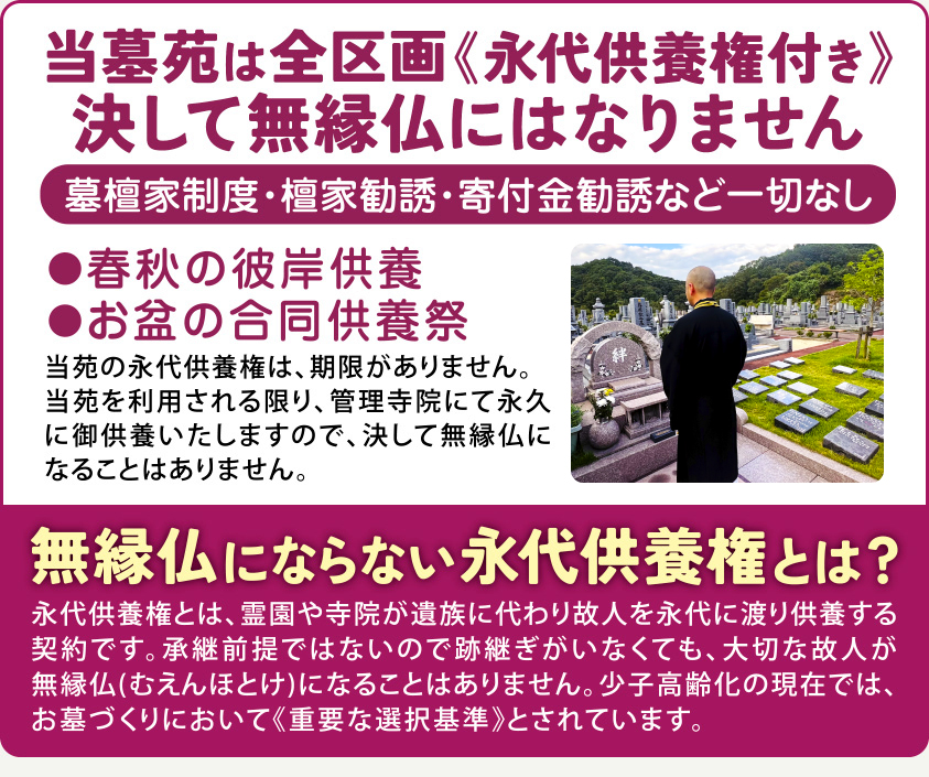 ● 永代供養権付なので後継ぎや維持管理の心配がいりません。