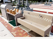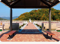 総面積1.124㎡のゆとりある苑内は、日当たりも良く開放感に満ちています。苑内は完全バリアフリー設計で主道にはモダンで機能的なインターロッキング舗装を施しています。通路幅も充分な広さを確保しており、車椅子でも安心して参拝いただけます。